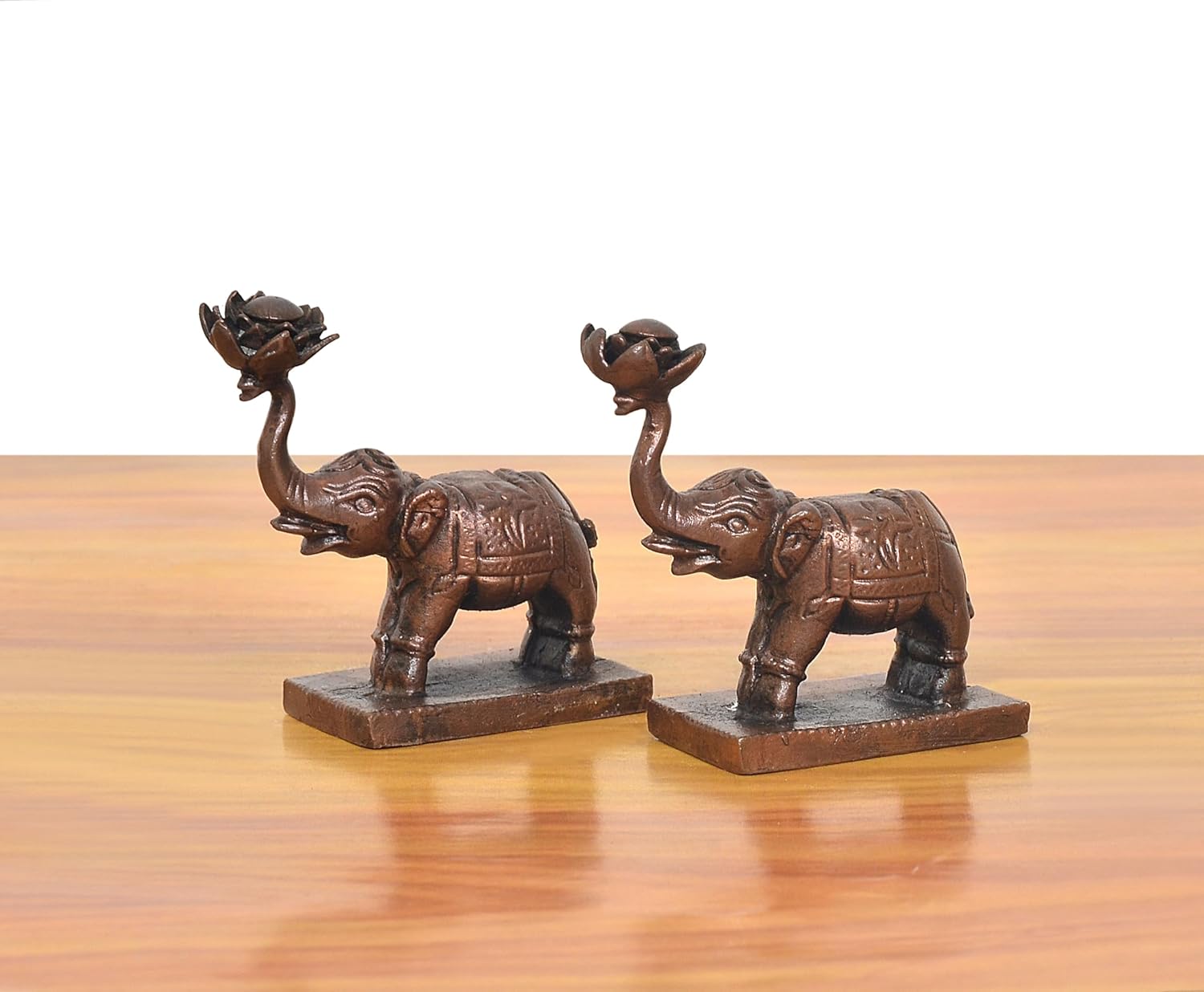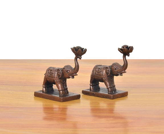 Copper Elephant Figurine |Set of - 2| (Height: 2 Inches)