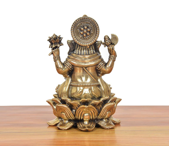 Bronze Goddess Lakshmi and Lord Ganesha Idol-Hindu Deities Figurine (Height 5 Inch)