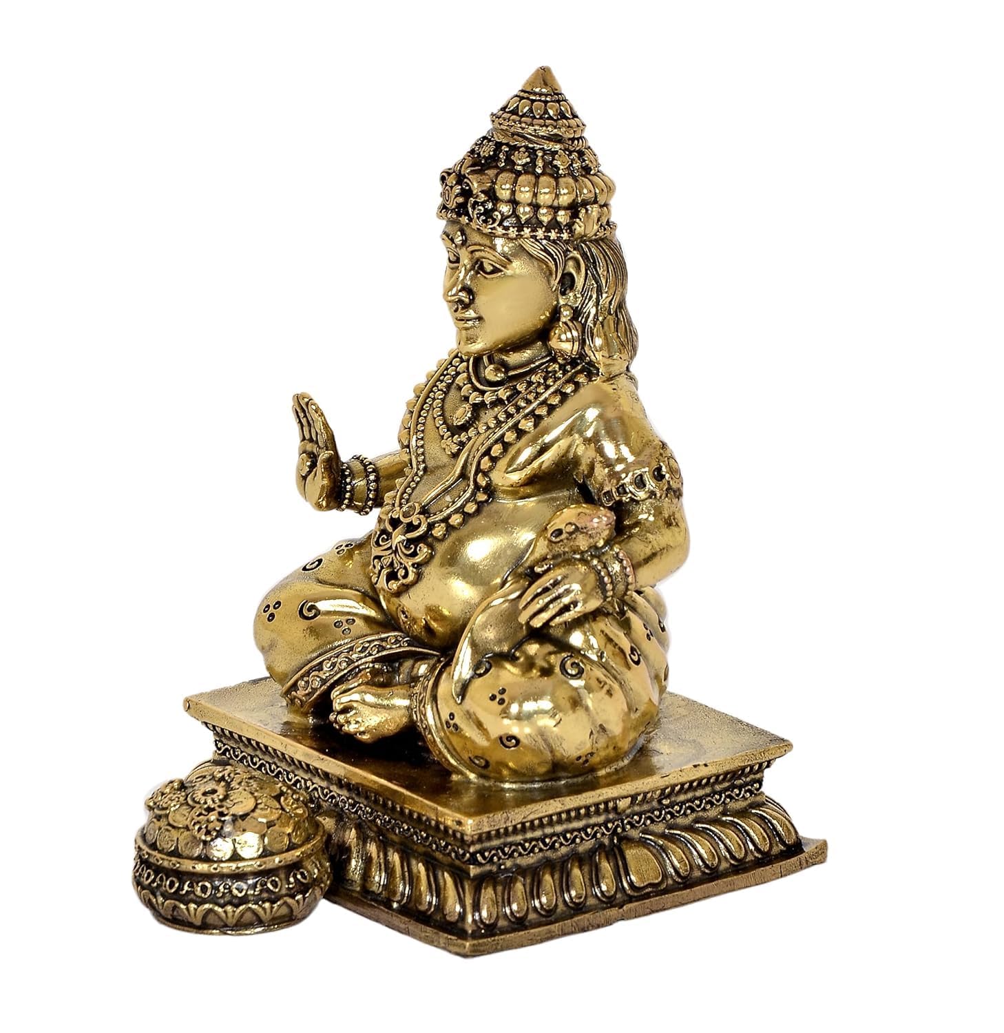 Embrace prosperity and good fortune with this stunning Bronze Kuber Idol Statue Showpiece. Enhance your home or office decor with this 3-inch tall bronze statue, perfect for pooja mandirs. Invite positive energies and blessings into your space with this beautifully crafted and auspicious showpiece