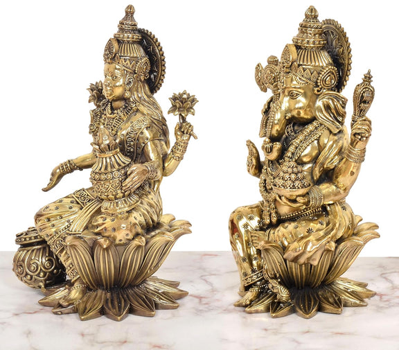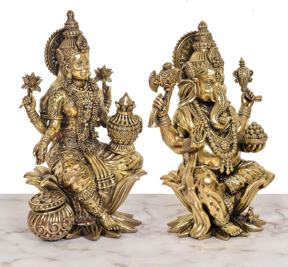 Bronze Lakshmi Ganesh Statue (Height 10 Inch)