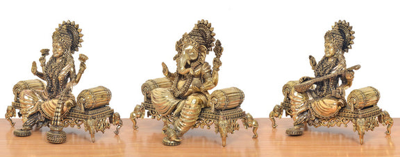 Bronze Lakshmi Ganesha Saraswati Idol (Height:8 Inches)