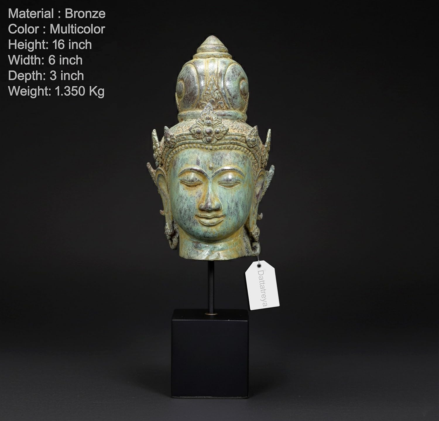 Bring divine serenity into your sacred space with this exquisite Bronze Buddha Head on Stand. Crafted with reverence and attention to detail, this 14-inch idol radiates peaceful energy and spiritual grace. The warm bronze finish captures light beautifully, creating a meditative focal point for your home, temple, or altar. Perfect for those seeking to deepen their spiritual practice or honor the teachings of Buddha, this timeless piece serves as a gentle reminder of inner peace and enlightenment. A cherished addition to any mindful sanctuary.
