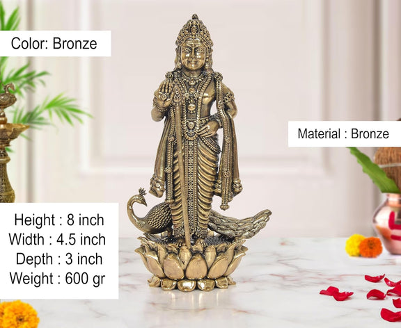 Bronze Standing Lord Kartikeya Murugan Murti (Height: 8 inch)