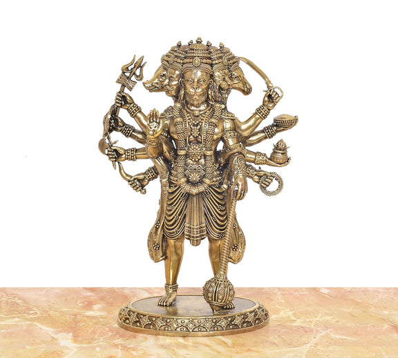 Bronze Standing Panchmukhi Hanuman Figurine Ten Armed (Height :10 Inches)