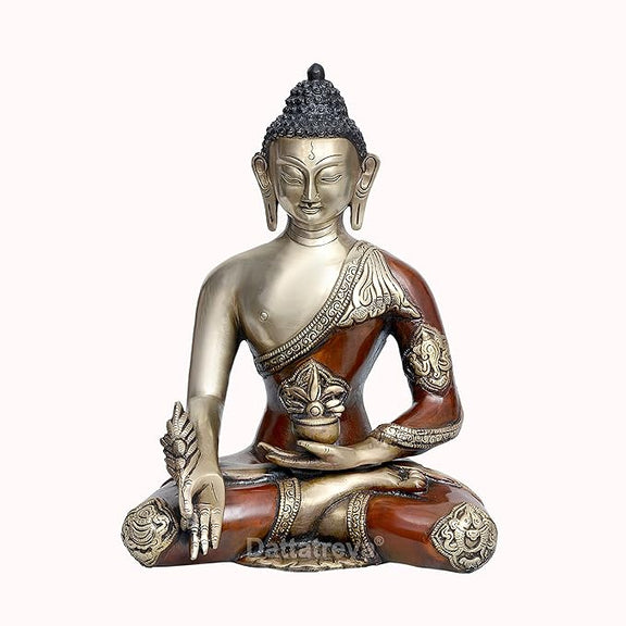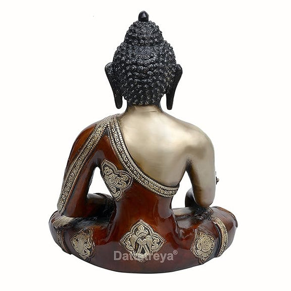 Brass Buddha Statue Bhumisparsha Pose (Height: 11 Inches)