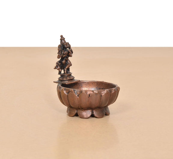 Copper Krishna Urli Bowl for Floating Flowers Showpiece (Height:3 Inch)