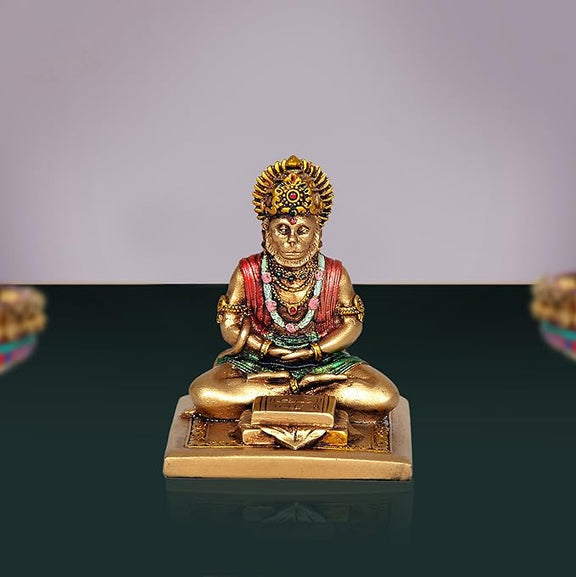 God Hanuman JI Sitting Statue Idol Sculpture Multicolor Resin Statue (Height 3.5 Inch)