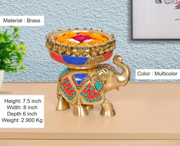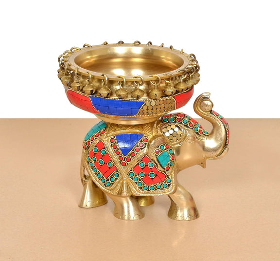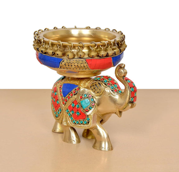 Brass Elephant with Urli Idol with Ghungroo (Height : 7.5 Inch)