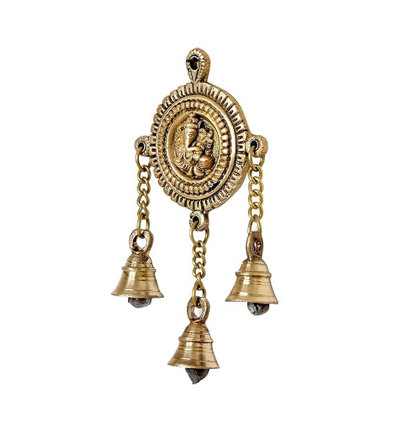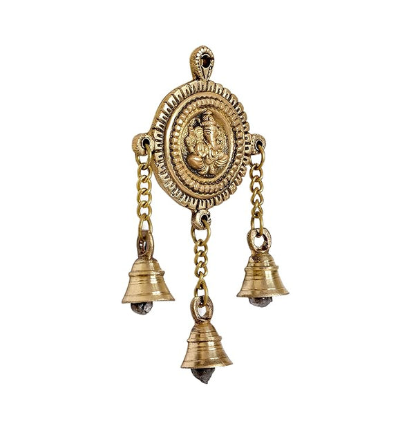 - Brass Ganesh Hanging with Bells - Hindu Home Decor | Traditional Ganesha Wall Hanging | Spiritual Decorative Bells for Sacred Space, Prayer Room, or Entrance"