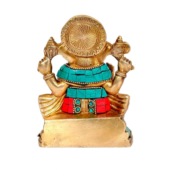 - Ganesha Idol Brass Turquoise Stone Sculpture Hindu God Ganesh Home Decor