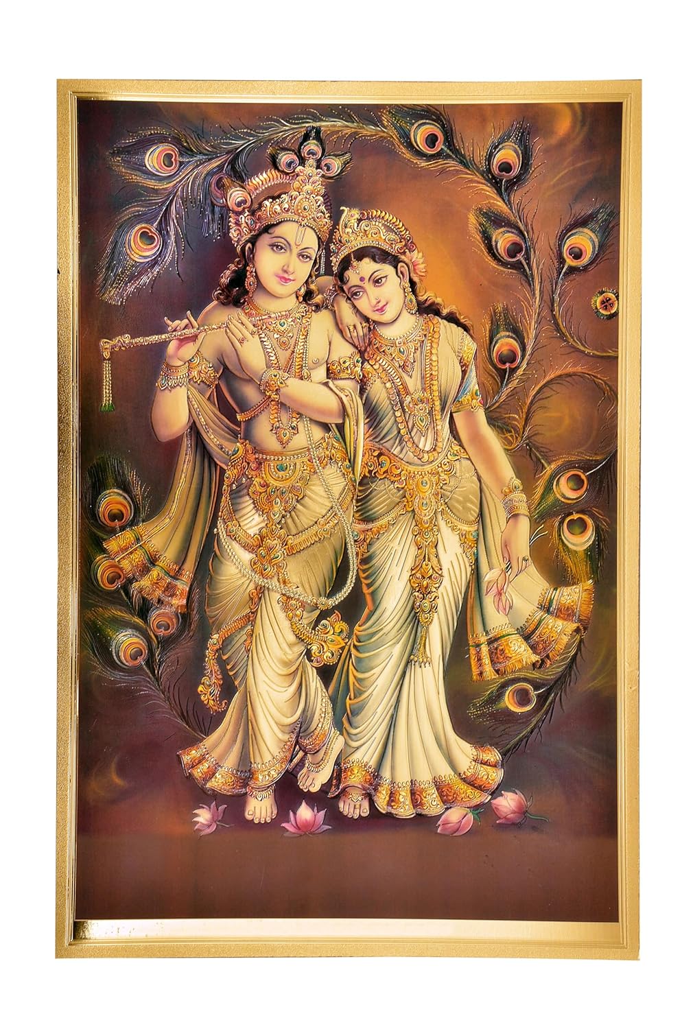 Gold Foil Plated Radha Krishna Wall Poster (Height 18 Inch X Width 12 Inch)
