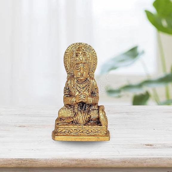 Hanuman Brass Statue Finish Idol Decorative Showpiece Handcrafted Hanuman Ji Golden Murti for Home Office and Gifting Purpose(Height: 4 Inches)