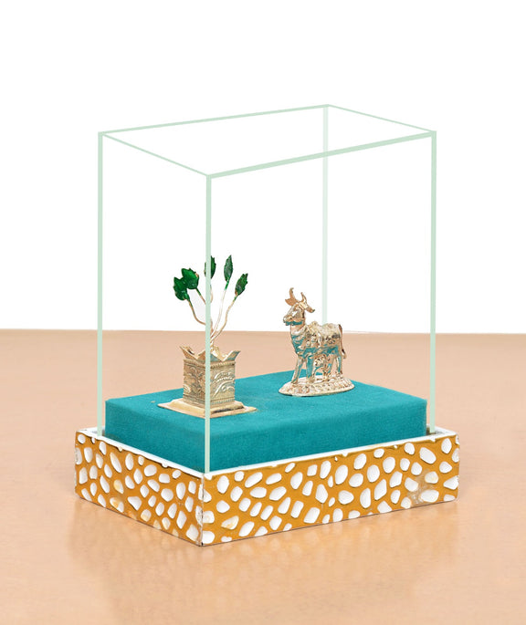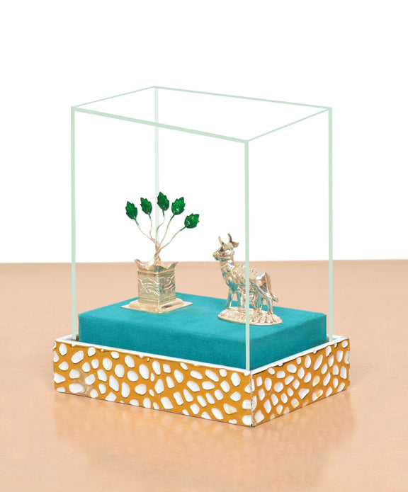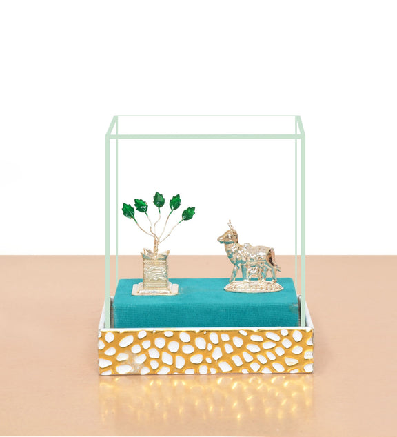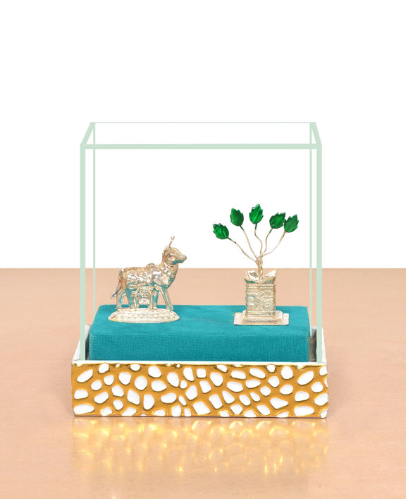 White Metal Kamdhenu Cow with Tulsi Plant Symbol of Purity and Prosperity (Height : 5 Inches)