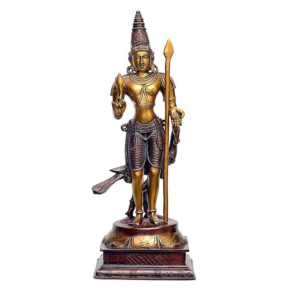 Lord Swami Kartikeya Ji Kartik Statue with Peacock Brass Murugan Subramanya Murti Height 16 Inches