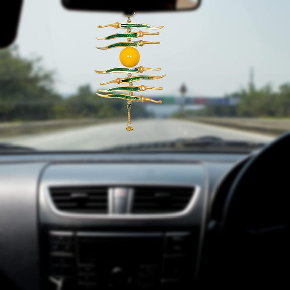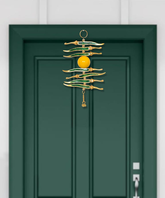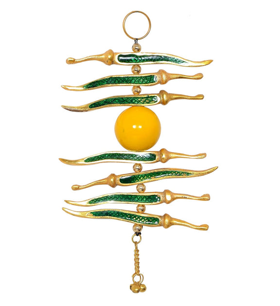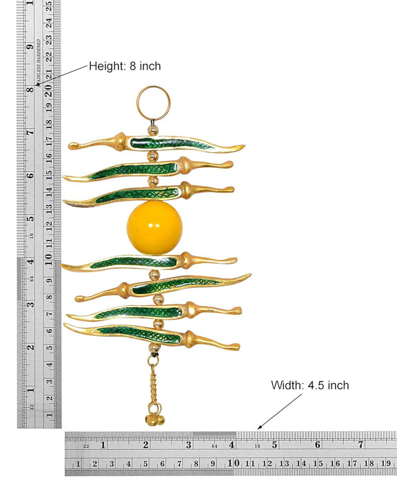 Protect your home, car, and office from negative energy with our Metal Nimbu Mirchi Nazar Battu Hanging! Handcrafted with a golden finish and a powerful evil eye, this 8 inch hanging not only adds a touch of traditional flair, but also acts as a powerful protector. Keep positivity flowing wherever you go.
