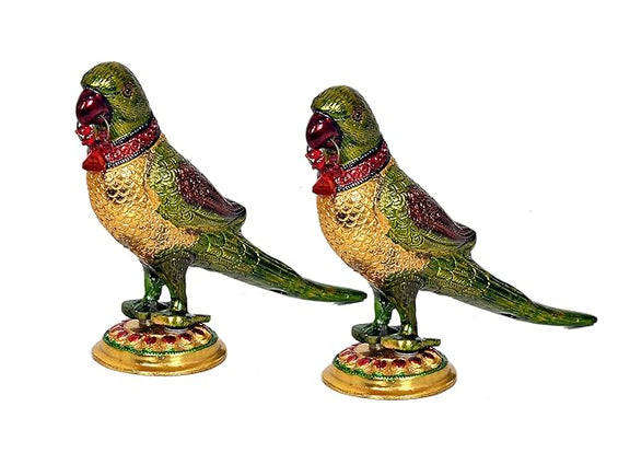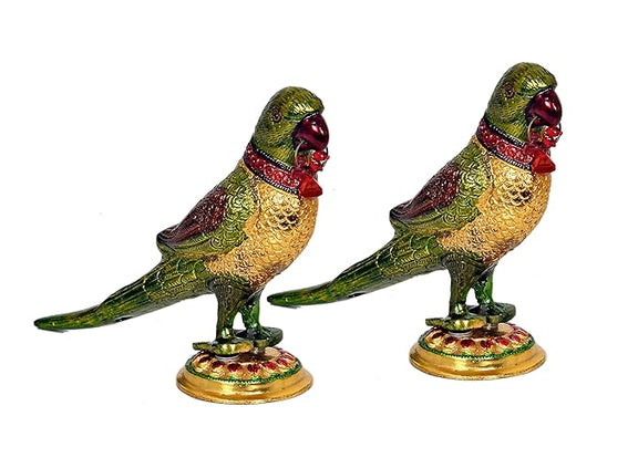 Iron Parrot Statue (Set of 2) Home Decor (Height: 7 Inches)
