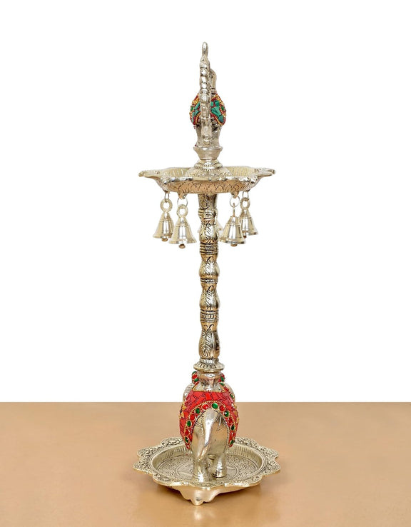 Metal Silver Peacock Oil Lamp Diya Stand (Height: 19 Inch)