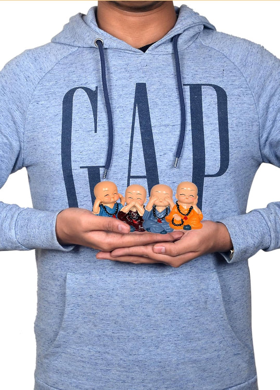 Resin Buddha Monk Set of 4 Statue Smilling Little Buddha Monk Figurines Showpiece Buddha Idol Statue for Table Decor Living Room Home Car Dashboard (Height: 2 Inch)
