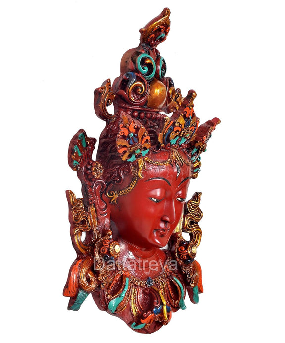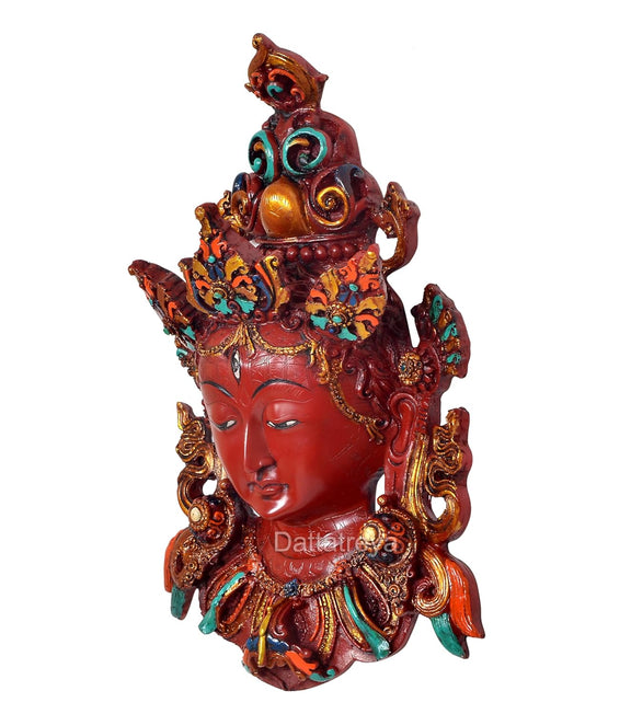 Resin Goddess Tara Wall Hanging Mask Buddhist Deity Handmade Statue (Height : 12 Inch) (Multicolour)